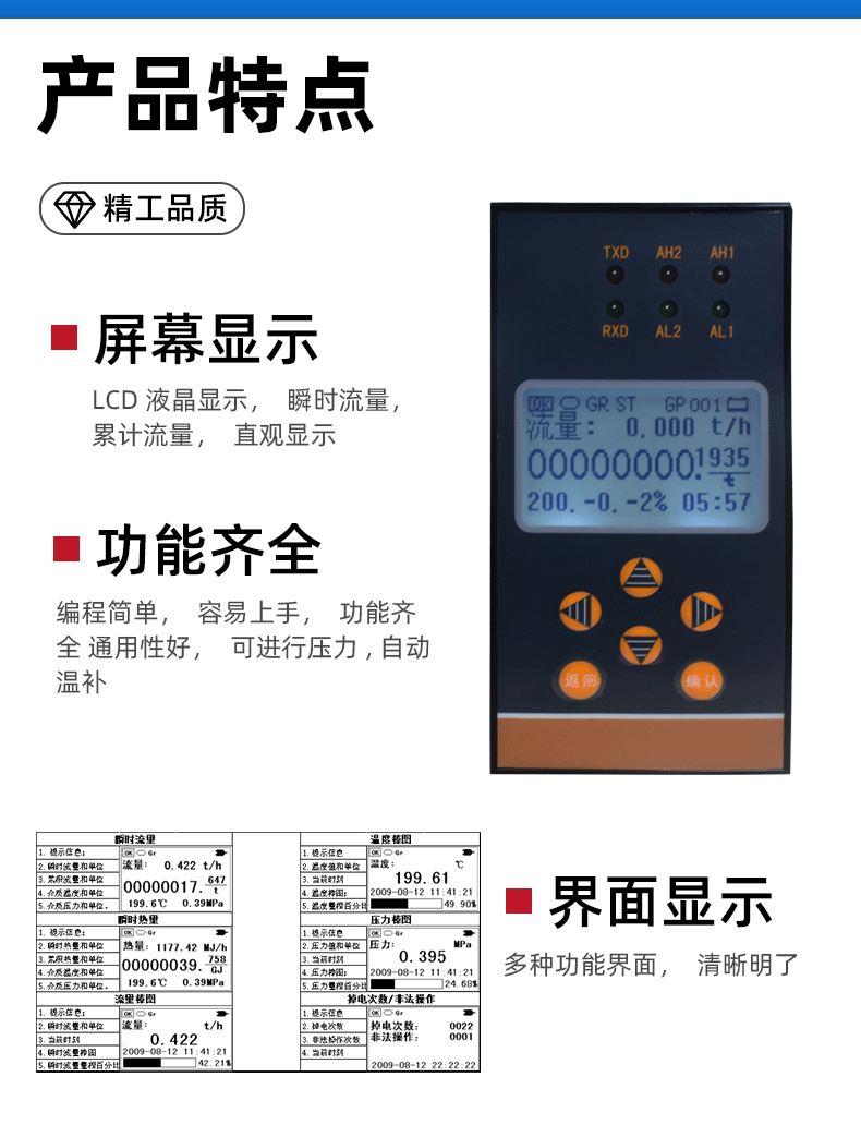 * 流量输入通道:可接收频率信号和多种模拟电流信号;