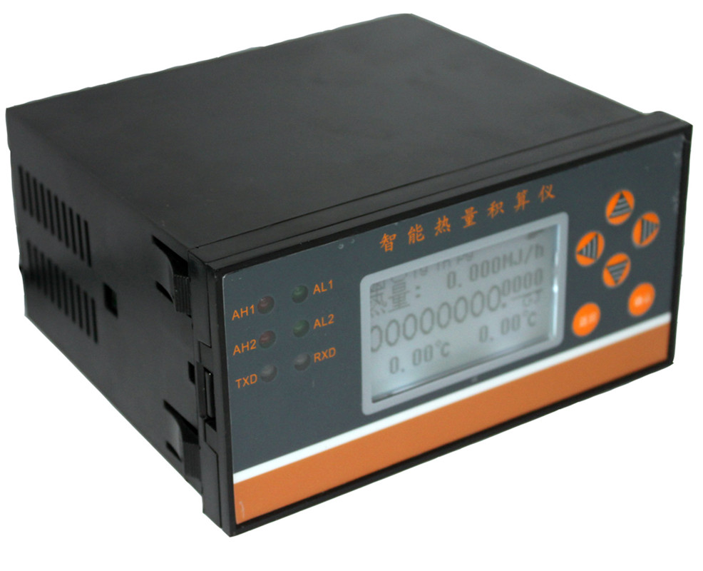 智能冷量热量积算仪(以下称仪表)是一个以微处理器为基础、功能齐全,有通讯能力,能与各种流量变送器、传感器配合进行流量测量的仪表,并同两支铂热电阻(或经温度变送器)配合完成液体冷量或热量计量。由于进行了周密的可靠性设计,使得仪表具有良好的电磁兼容性和可靠性。由于选用了高精度A / D 转换器和温度稳定性良好的元器件,并采用浮点运算,还采取了多个提高系统精度的措施,使仪表可用作冷媒体的冷量计量或热载体的热量计量,尤其适合贸易结算和计量考核,在楼宇空调系统中,经过阀门切换,该仪表夏季可用于冷量计量,冬季可用于热量计量,并可自动转换,一表两用。