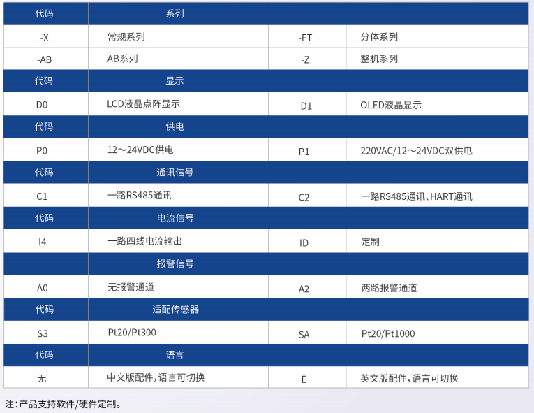传感器可接Pt20/PT300、 Pt20/PT1000等。