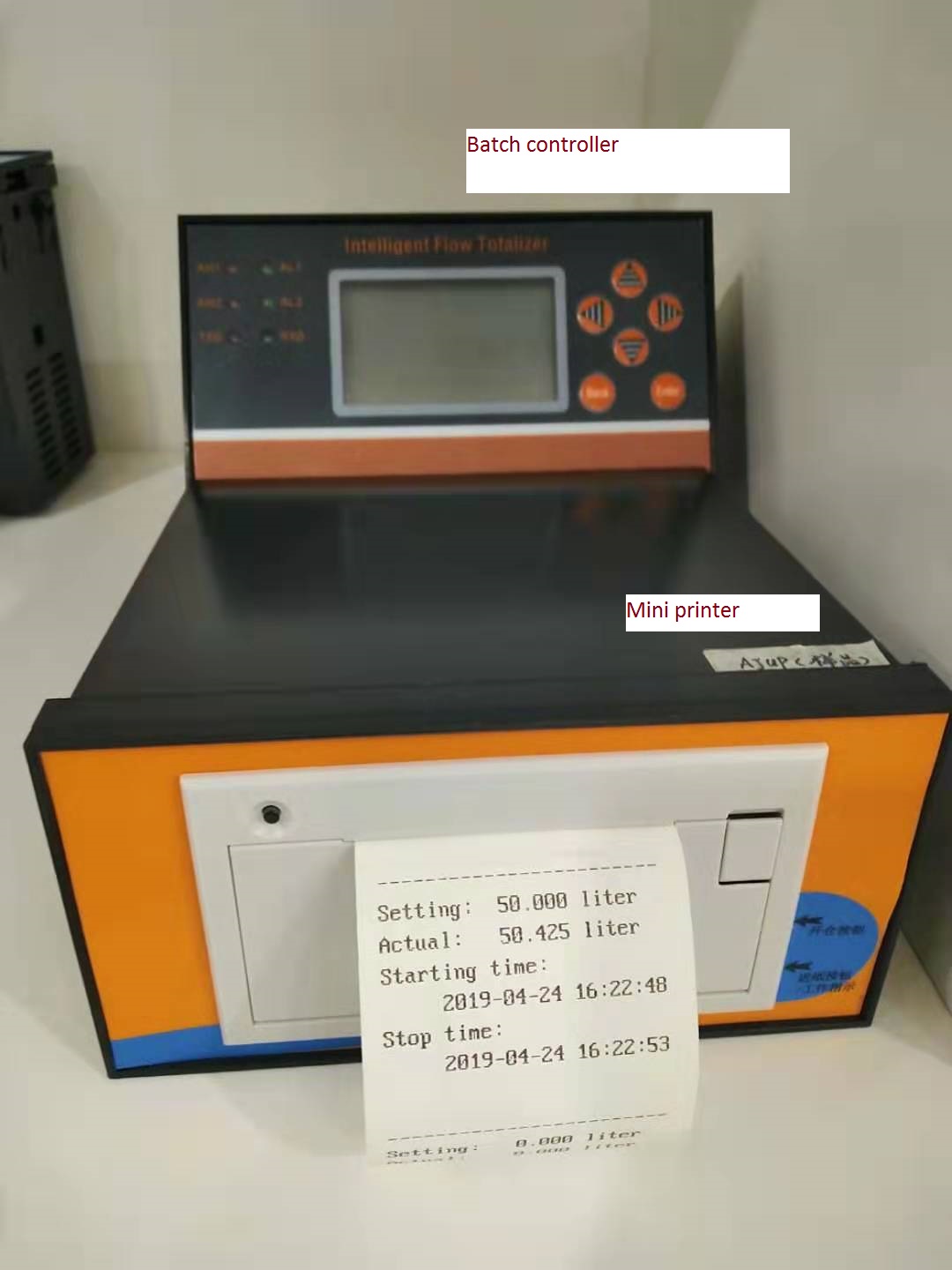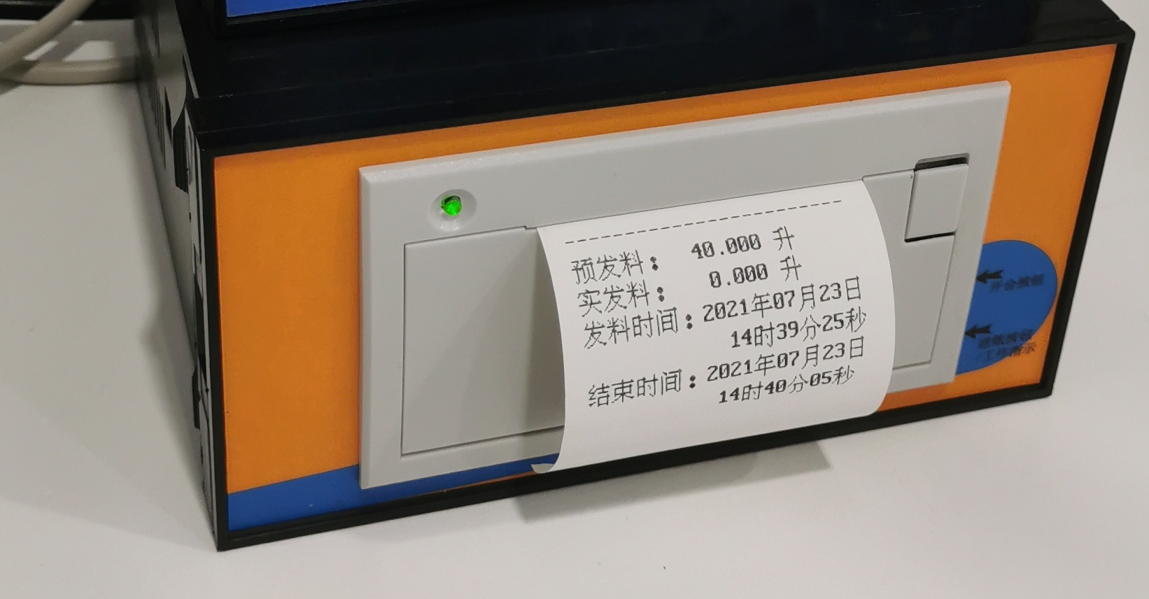定量控制仪带微型打印机,打印小票方式可以选择:发料结束可以自动打印小票或是选择打印小票。